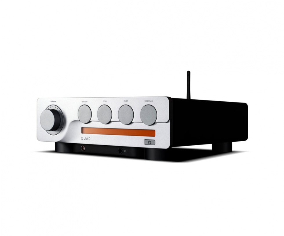 Il intègre également plusieurs boutons de réglage : contrôle du volume, de la sélection des sources, de l’équilibre, des graves et du célèbre réglage « Tilt » de QUAD, qui permet d’ajuster finement le spectre audio sans ajouter de coloration artificielle.