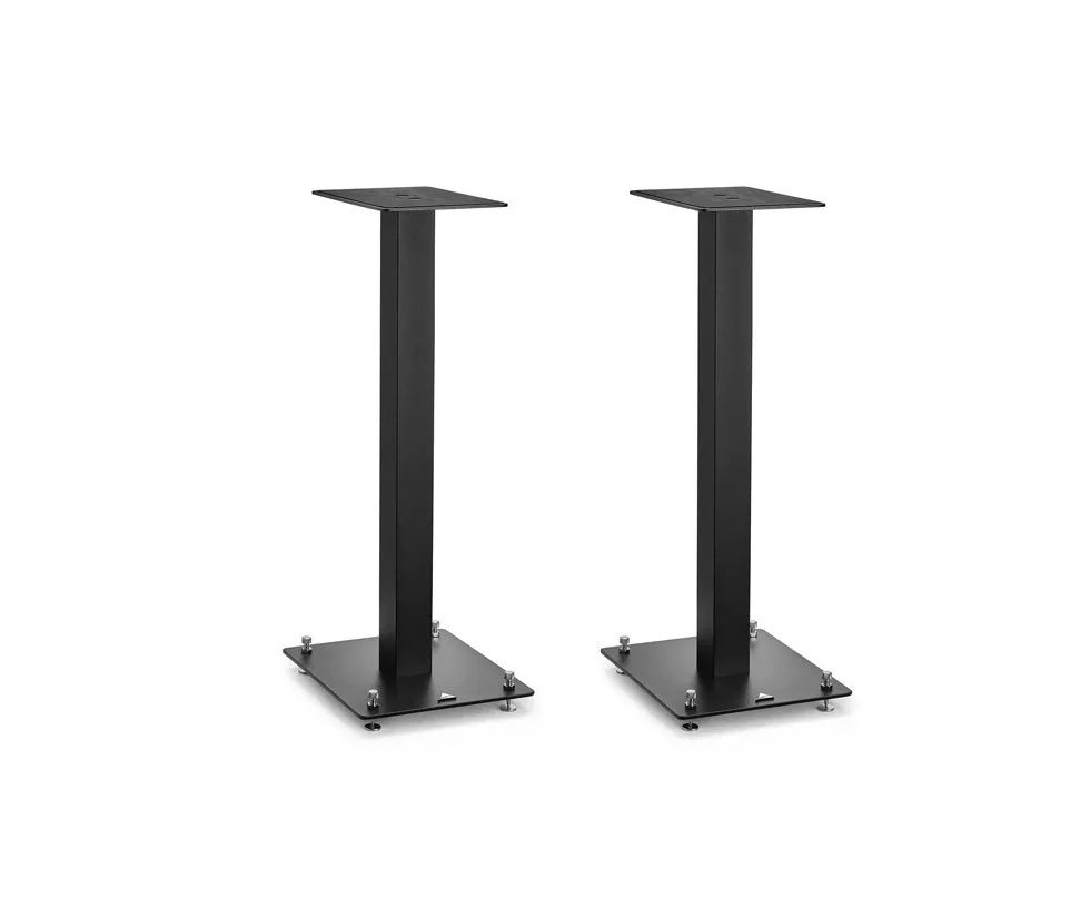 Les supports d’enceintes S01 par Triangle de 60 cm positionnent les enceintes à hauteur d’oreille.
