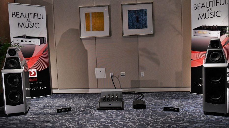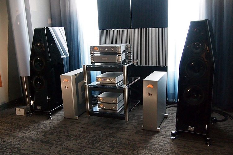 Les nouvelles enceintes Verity Audio Otello amplifiées par l’ampli hybride Trilogy Audio Systems 925 et le pré phono 907 phono.