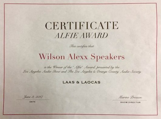 La Wilson Audio Alexx qui obtient l’Award ALFIE mais aussi l’Award de The Absolute Sound « Cost is no object »: